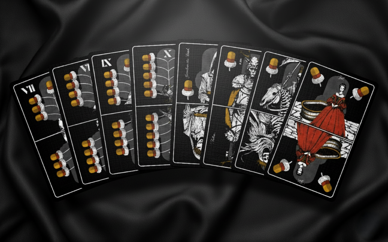 Ez a pakli a hagyományos magyar kártya sötétebb, apokaliptikus újragondolása. A négy szín – piros, tök, zöld és makk – most a világvégét hozó lovasokat idézi meg: Háború, Éhínség, Járvány és Halál.