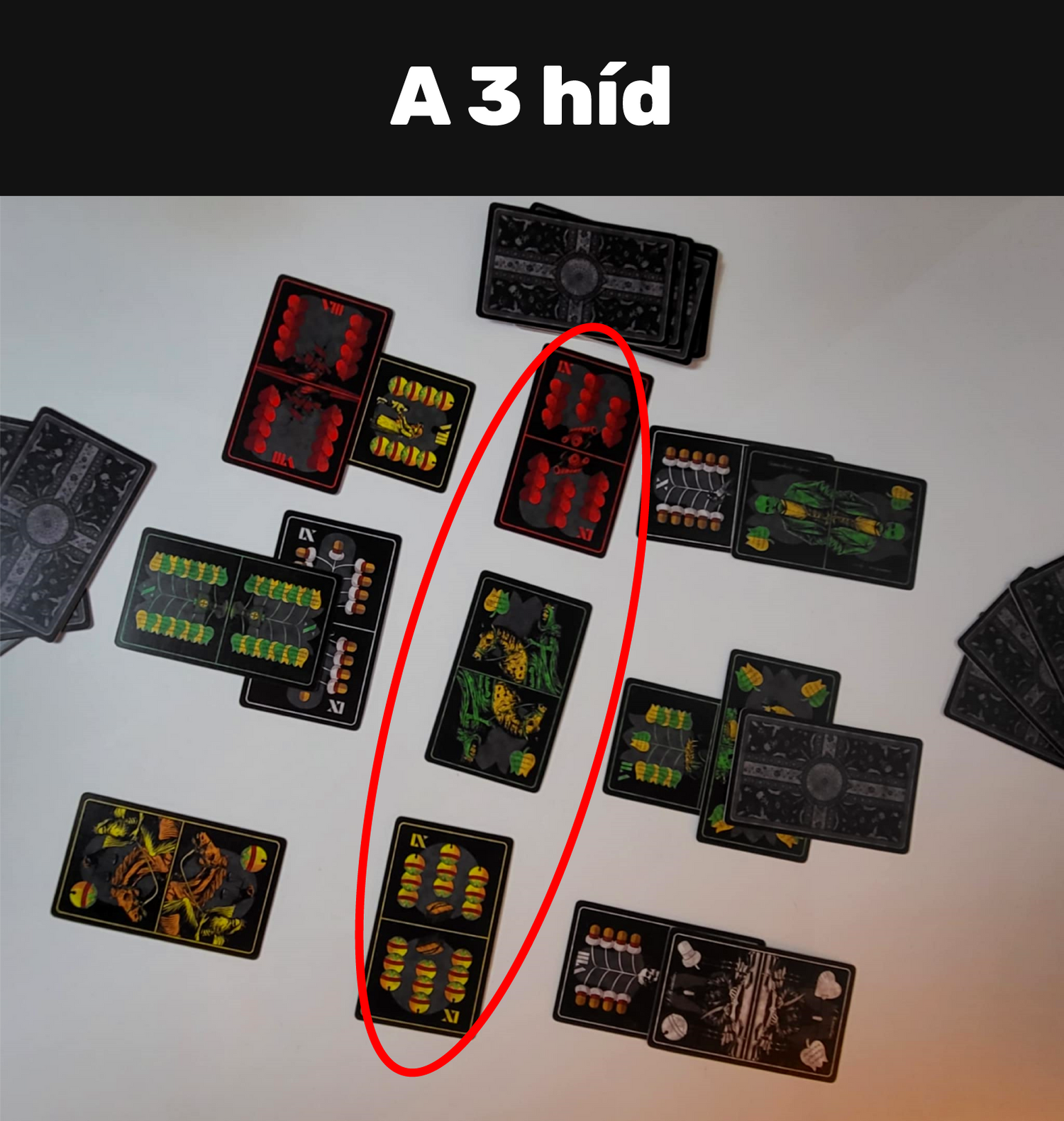Híd-szín egyezés: Minden olyan lap aminek a színe azonos a híd színével aminél a számoláskor van +2 pontot ér. Ezt a +2 pontot a tök lapok felező hatása előtt add a lap értékéhez.