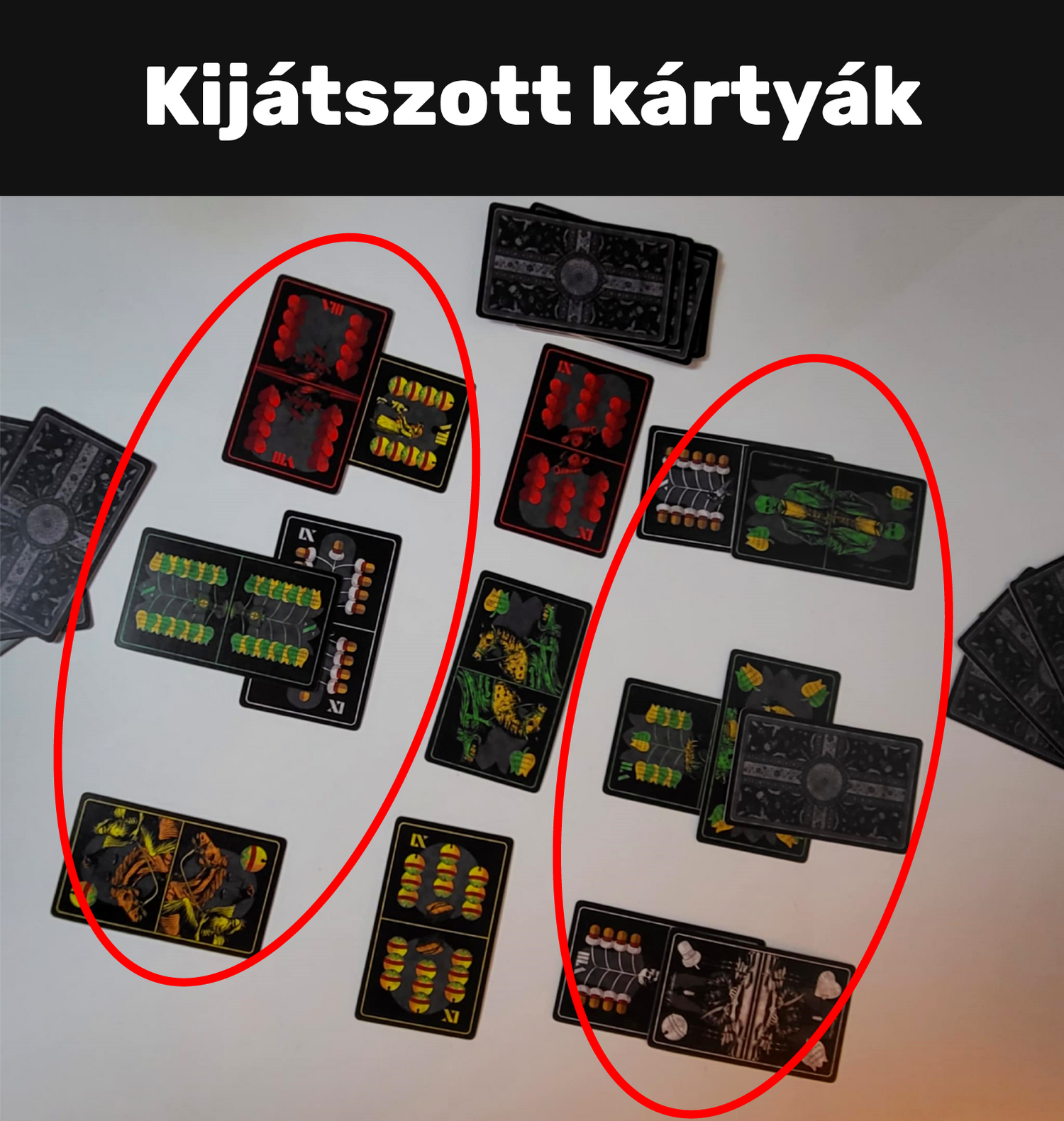 - Tök: a játék végi számolásnál felezi az ellenfél vele pontosan szemben lévő lapjának értékét.
