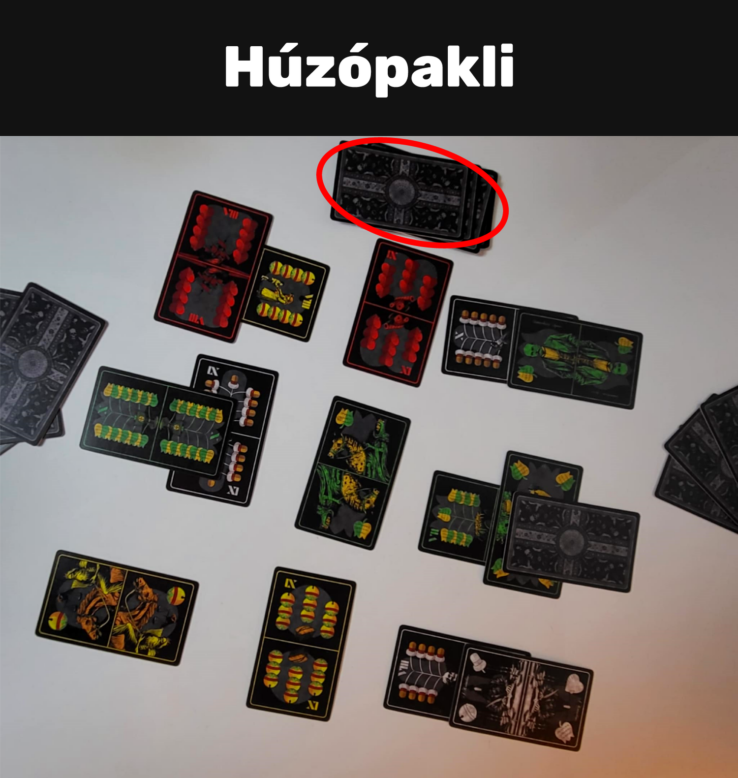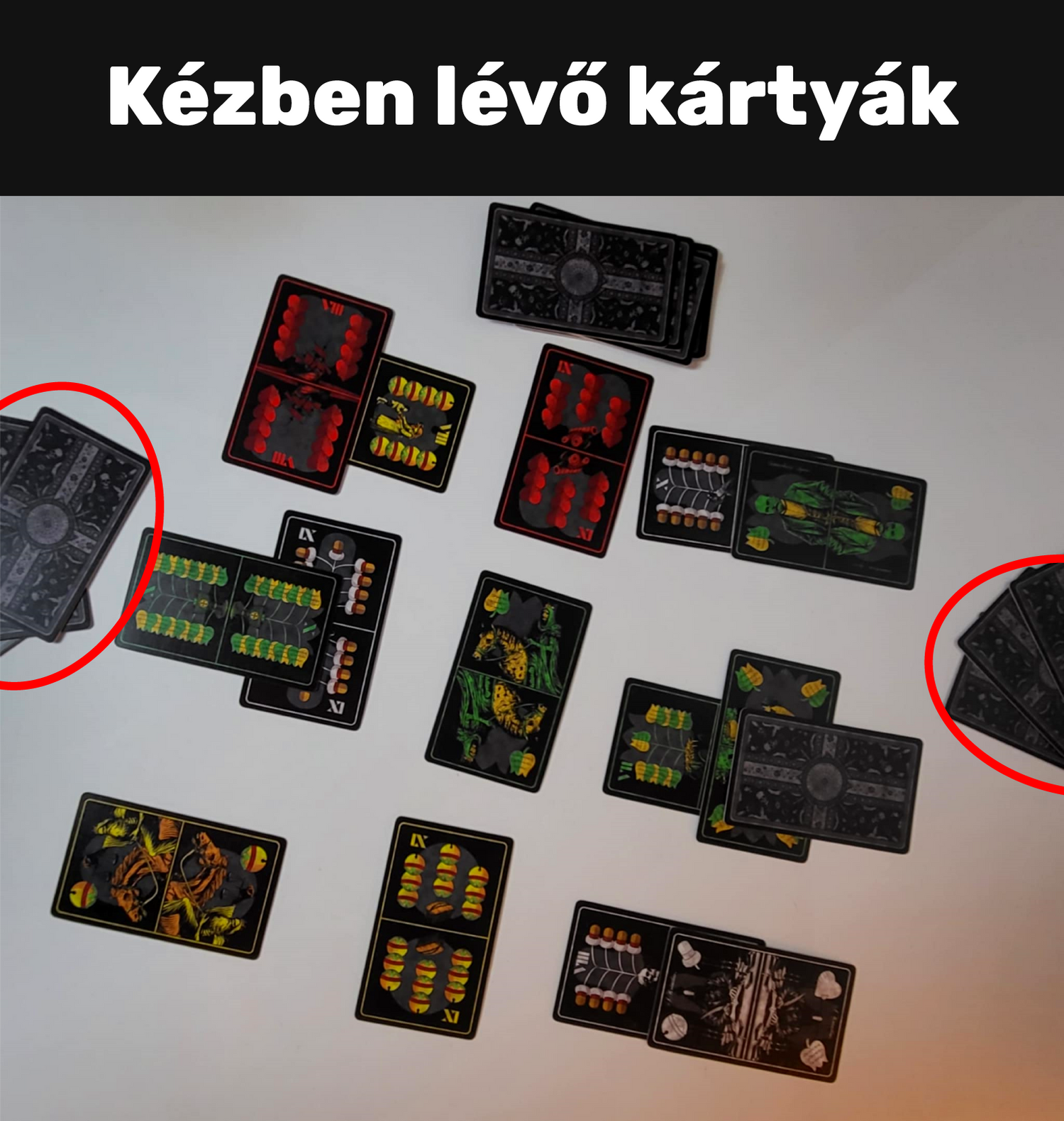 Osztás: mindkét játékos 4 lappal kezd, minden kör elején húznak egyet mindketten.